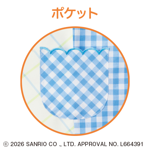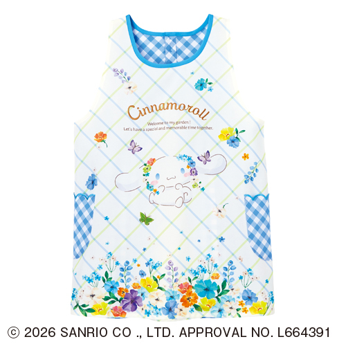 ポケットの形がラブリーなお花畑とシナモロールのエプロン。