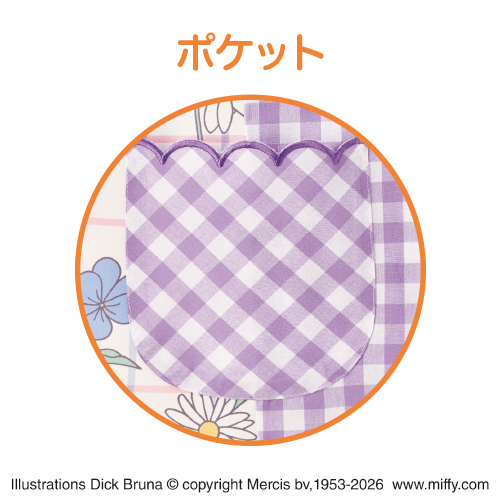 軽やかなホワイトベースに花柄をちりばめたデザイン。優しいパープルチェックが明るく彩ります。