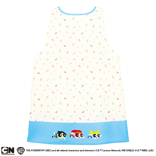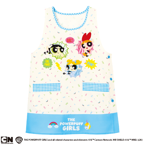 パワーパフ ガールズの刺繍アップリケがポイント。園児の注目を集める、パワフルかわいいエプロンです。