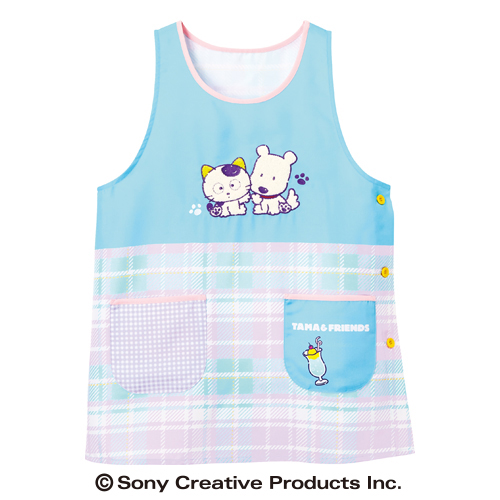 爽やかなミントブルーに刺繍が映えるデザイン。やわらかなチェック切替で、清潔感とかわいさを両立しました。
