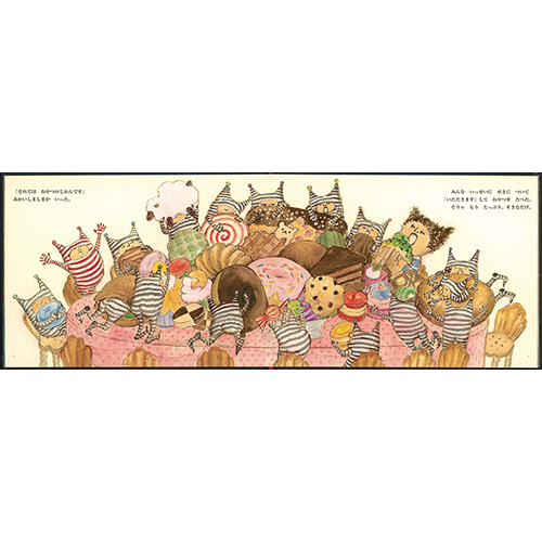 ケーキを持ち去るしましまを追って、アカーキーはおかしな世界へ迷いこみます。
