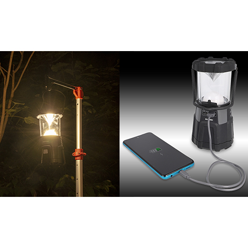 ●サイズ/約φ102×189㎜●重量/680g●電源/USB充電、単1乾電池3本(別売)●明るさ/約1400ルーメン●付属品/ハンガーフック、USB Type-Cケーブル(50㎝)、専用充電池