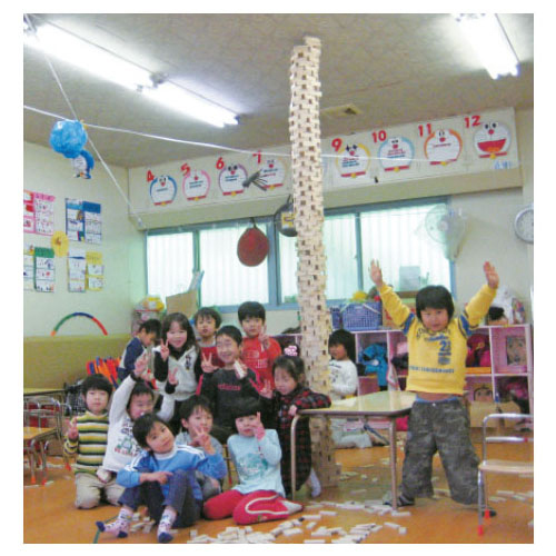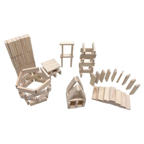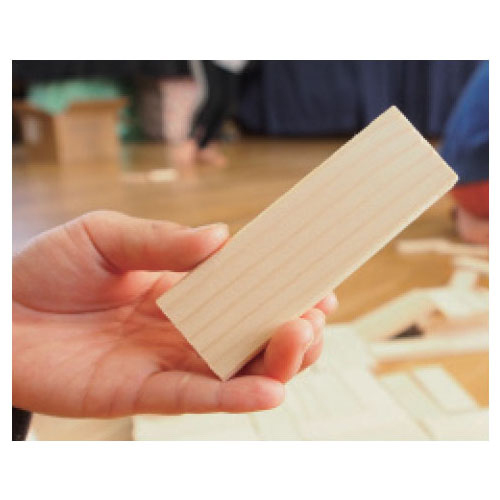 かまぼこ板が原料!積んだり並べたり、みんなで楽しく遊べます。