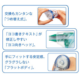 使いやすいヨコ引き修正テープの詰め替えタイプ。