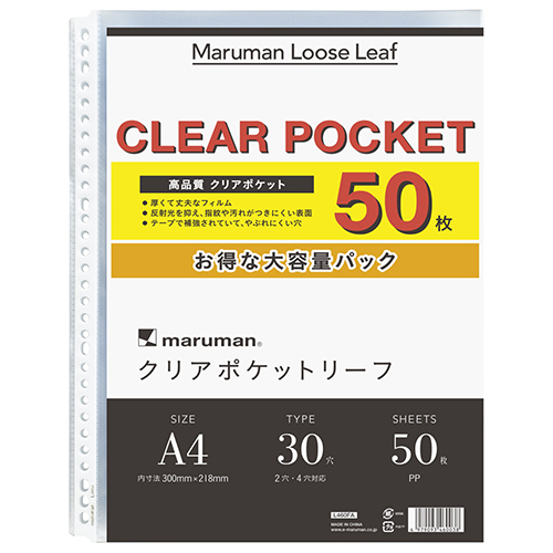 【マルマン】 クリアポケット 2穴(50枚)