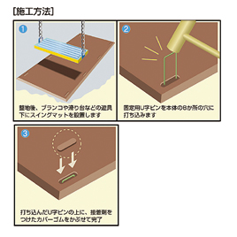 地面の凸凹をなだらかに。ブランコ、鉄棒、スベリ台の降り口に敷いて衝撃を和らげます。