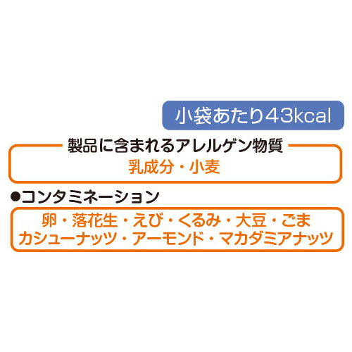 ●原材料/小麦粉(小麦(国産))、砂糖、植物油脂(パーム油)、加糖練乳(乳成分を含む)、小麦ハイガ、ハト麦、食塩/貝カルシウム、膨張剤(重曹)