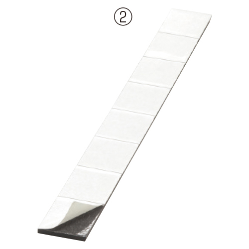 ●サイズ/本体:25×200×4㎜、1片:(1)25×200㎜(2)25×25㎜●ピース数/(1)2枚(2)16片●耐荷重/(1)約2.5 ~ 3.5㎏(テープ2枚使用時)(2)1片あたり約200g