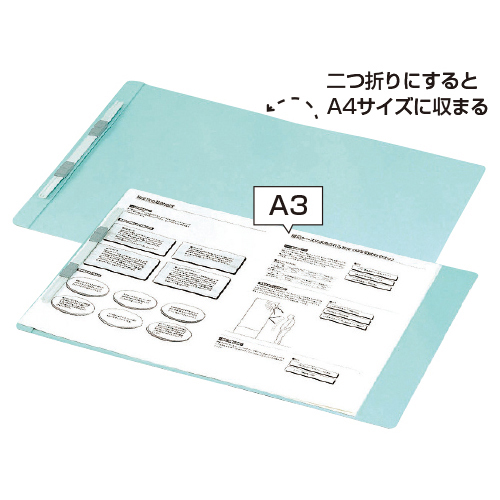 A3やB4の用紙を二つ折りにして半分のサイズで収容できます。