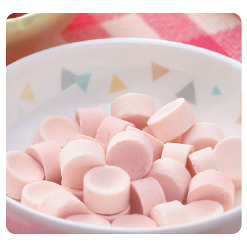 ●原材料/砂糖(てん菜(国産))、コーンスターチ、馬鈴薯でん粉(馬鈴薯(国産))、濃縮果汁(オレンジ、いちご)、デキストリン/酸味料(クエン酸)、ブドウ色素、ベニバナ黄色素